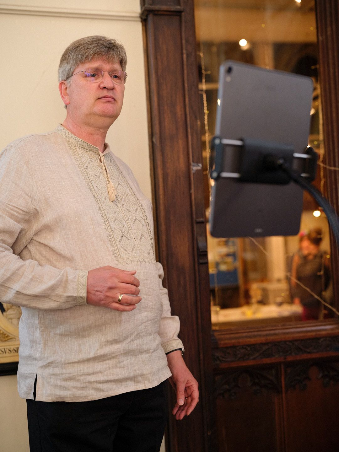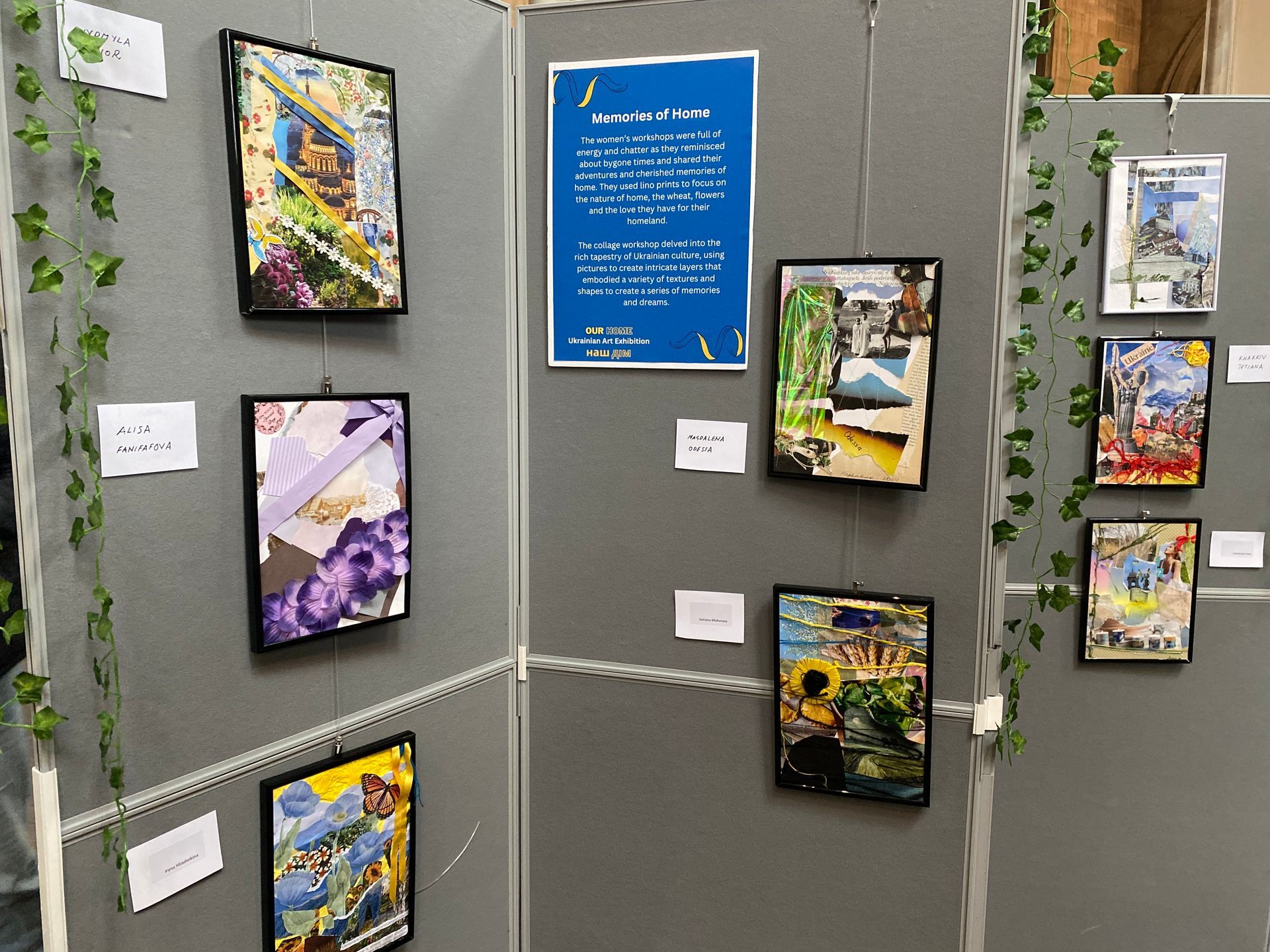 "I am so pleased we've come down to the church to see this exhibition. The stories of the refugees represented in this artwork and photographs makes the war/conflict in Ukraine even more heart-rending."